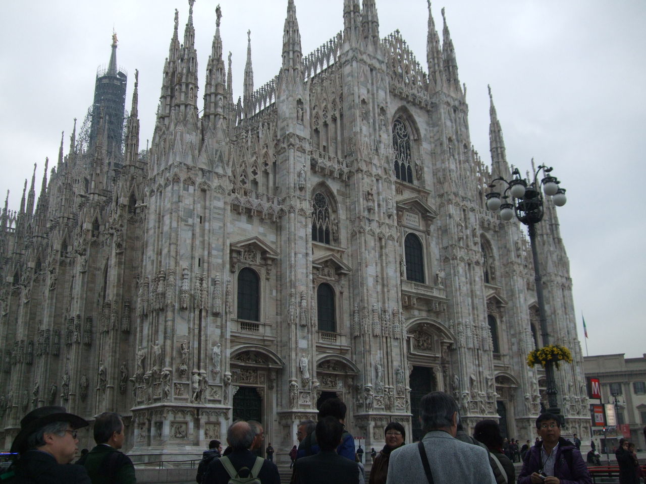 翌日は、ミラノ市内の観光。アーケードを抜けたところ、ドゥオーモ広場に大聖堂が突如現れたときには、一同、「オオ-ッ」と歓声があがりました。