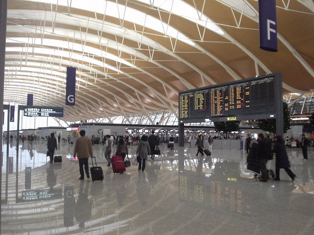 上海 浦東空港の新ターミナルとビジネスクラスのラウンジです。