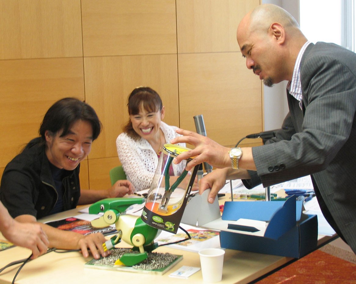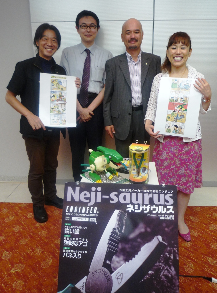 ウルスの原寸大人形や、くるくるネジザウルス、月刊ネジザウルス、そして連載4コマ漫画「ウルスの大冒険」もお見せしたところ、「ここまでやるか~」、「ありえへん~」と大いに乗って戴きました! 関西人としてはめちゃくちゃ嬉しい瞬間ですね~