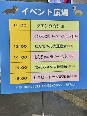 ワンコを連れず会場に向かわれる方が少し多かったので気になったのですが、会場手前の看板で理由が分かりました。