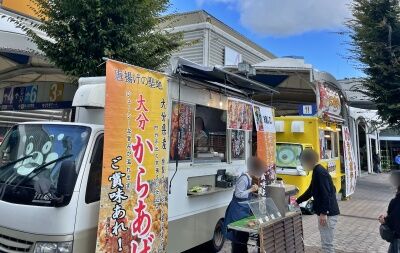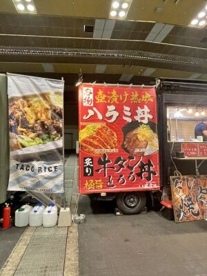 5号館には食べ物の販売ブースとともにフードトラックが複数台設置され、フードコートが完備されていました。
