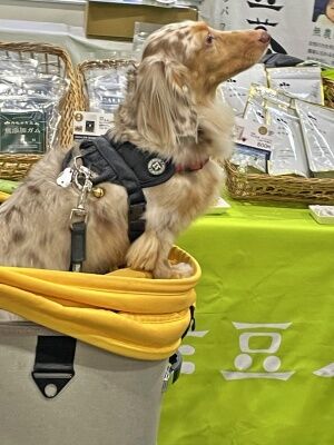 ナタマメ茶の試飲もあるようで、ダックスフントくんがじっとそれを見つめていました。